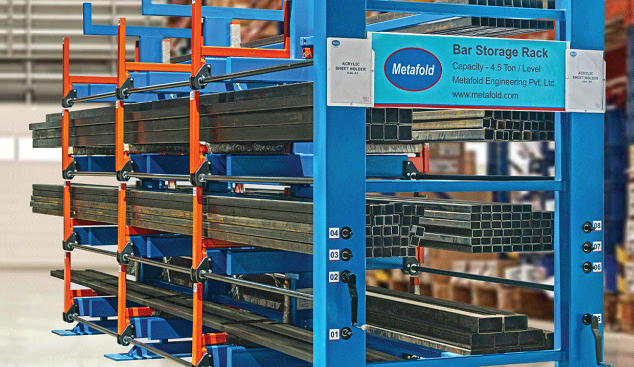 This rack is designed for storage of lengthy goods like bars, tubes, pipes, channels, flats, I-Beam, profile, rods and sections. This system is a compact, extractable / retractable type, organised vertical storage solution. For each level a cranking mechanism is provided for easy access of material to operator. This system provides a efficient storage solution of material which can be easily controlled by single operator thus increasing your profitability