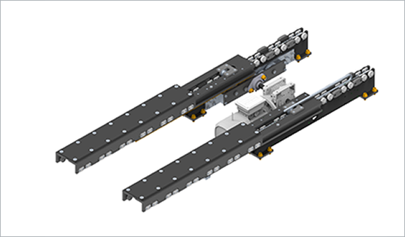 Integrated Radio Shuttles cranes, racking structure is converted into high-density racking. The horizontal carriage stops in front of the desired bay, and the radio shuttle travels within the rack for pallet storage or retrieval.