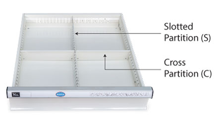 • Slotted Partitions (S) are Fixing Front to Back of the Drawers & Cross Partitions (C) are sub-dividing