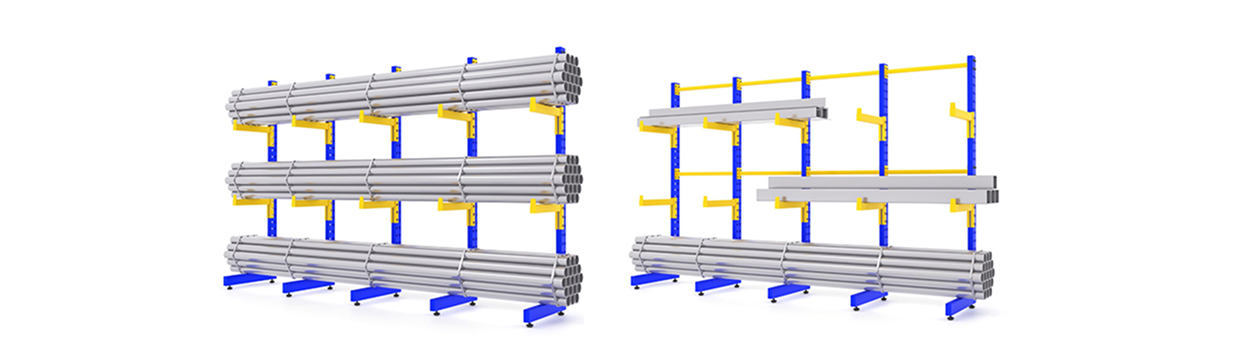 For storage of solid material such as - bars, rods, channels, flats, I-beam, billets