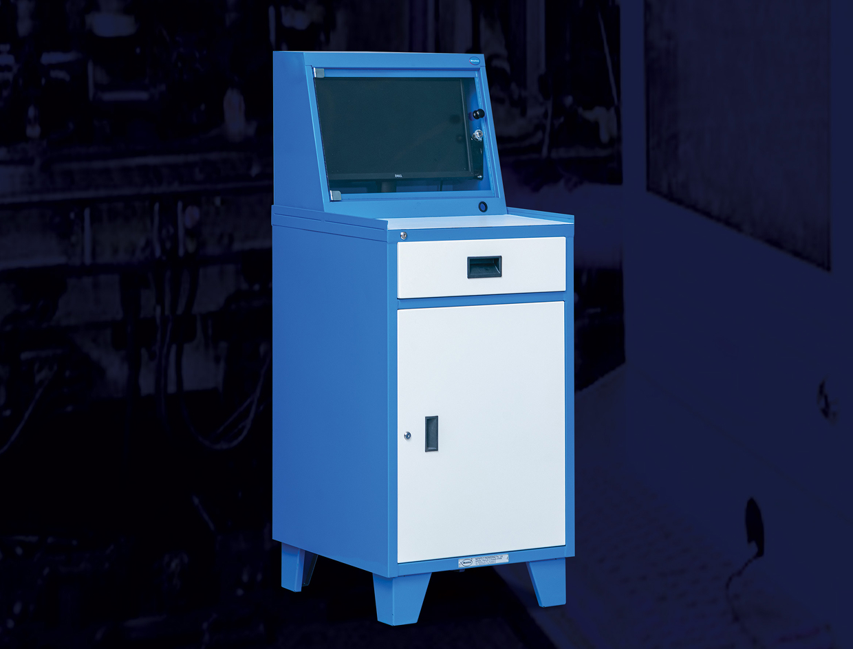 Our industrial computer cabinets offer robust PC protection in tough environments. With 2 shelves, including a pull-out option, they accommodate hardware and prevent dust damage. The sturdy polycarbonate door ensures monitor safety, while the lock provides security. Perfect for automotive, packing, and chemical industries, as well as offices and warehouses.