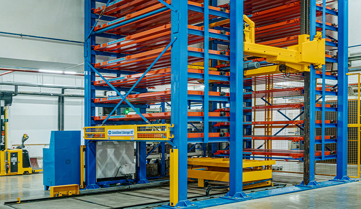 The Sheet Store is a robust and fully automated storage system designed for heavy-duty applications. By utilizing vertical space effectively, it minimizes the required floor space. By delivering the goods directly to the operator, this system reduces the risk of damage to raw materials and improves productivity.