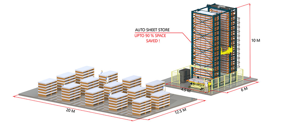 Our Sheet Store integrated with an Automated Plate Loader System provides a comprehensive solution to above challenges.